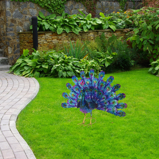 Dodaj do swojego ogrodu wyjątkowy element dekoracyjny – figurkę pawia z imponującym, rozłożonym ogonem, która zachwyca detalami i kolorystyką.