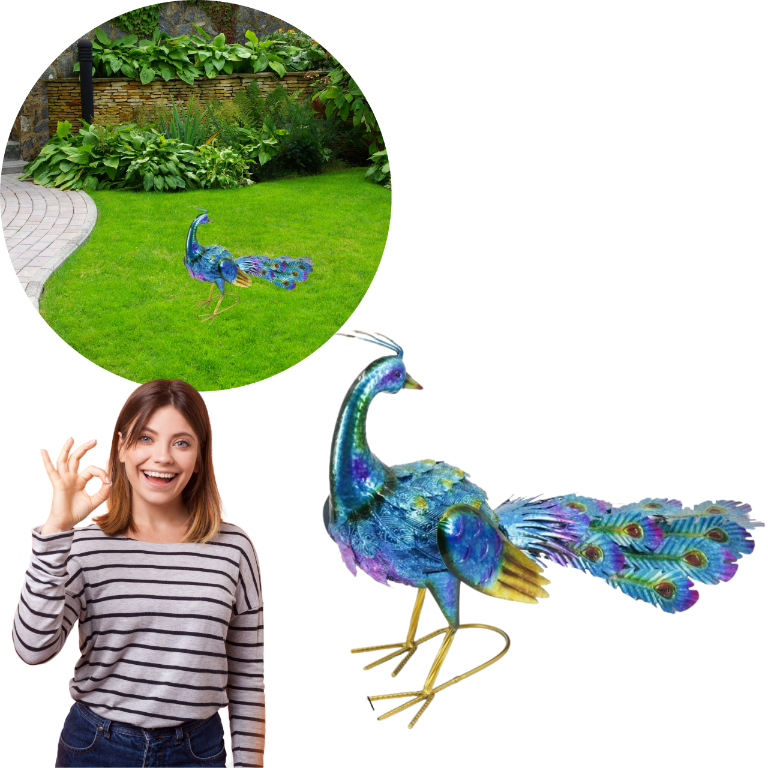 - ✅ Styl: dekoracyjna figurka pawia do ogrodu i wnętrz