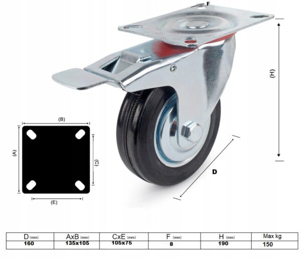 ☝️Wbudowany hamulec gwarantuje pełną kontrolę nad ruchem wózka, co przekłada się na większe bezpieczeństwo. Dzięki płycie montażowej instalacja koła jest szybka i prosta. Produkt doskonale sprawdzi się w różnorodnych zastosowaniach, od magazynów po przemysł, zapewniając wygodę i niezawodność na co dzień.