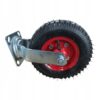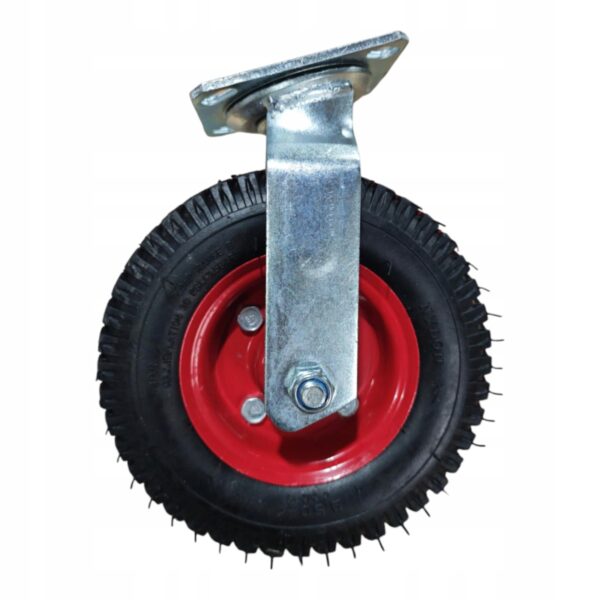 Koło obrotowe o średnicy 160 mm zapewnia niezawodność i wysoką wytrzymałość w codziennym użytkowaniu. Dzięki pneumatycznej oponie doskonale tłumi nierówności terenu, co sprawia, że transport nawet ciężkich ładunków jest płynny i komfortowy. Czerwona felga nie tylko nadaje estetyczny wygląd, ale również została wykonana z trwałego materiału odpornego na uszkodzenia.