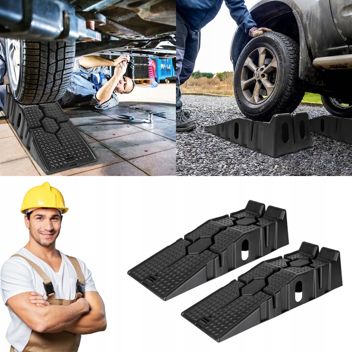 Podnieś wygodnie i bezpiecznie swój samochód dzięki stabilnym, szerokim i mocnym rampom najazdowym.