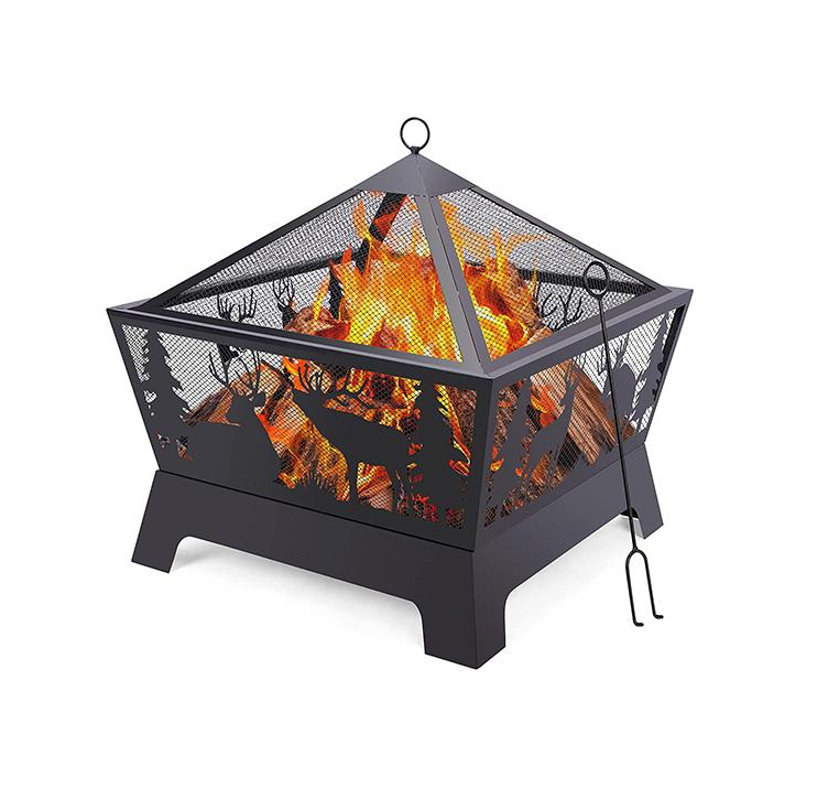 ➡️ Dekoracyjny design – motyw jeleni i drzew sprawia, że palenisko staje się ozdobą tarasu lub ogrodu. Ogień przepięknie rozświetla wycięte wzory, tworząc magiczny efekt.