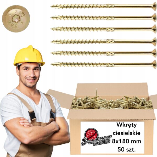 Kod producenta: Wkręty Ciesielskie TORX Do Drewna 50Szt 8x180