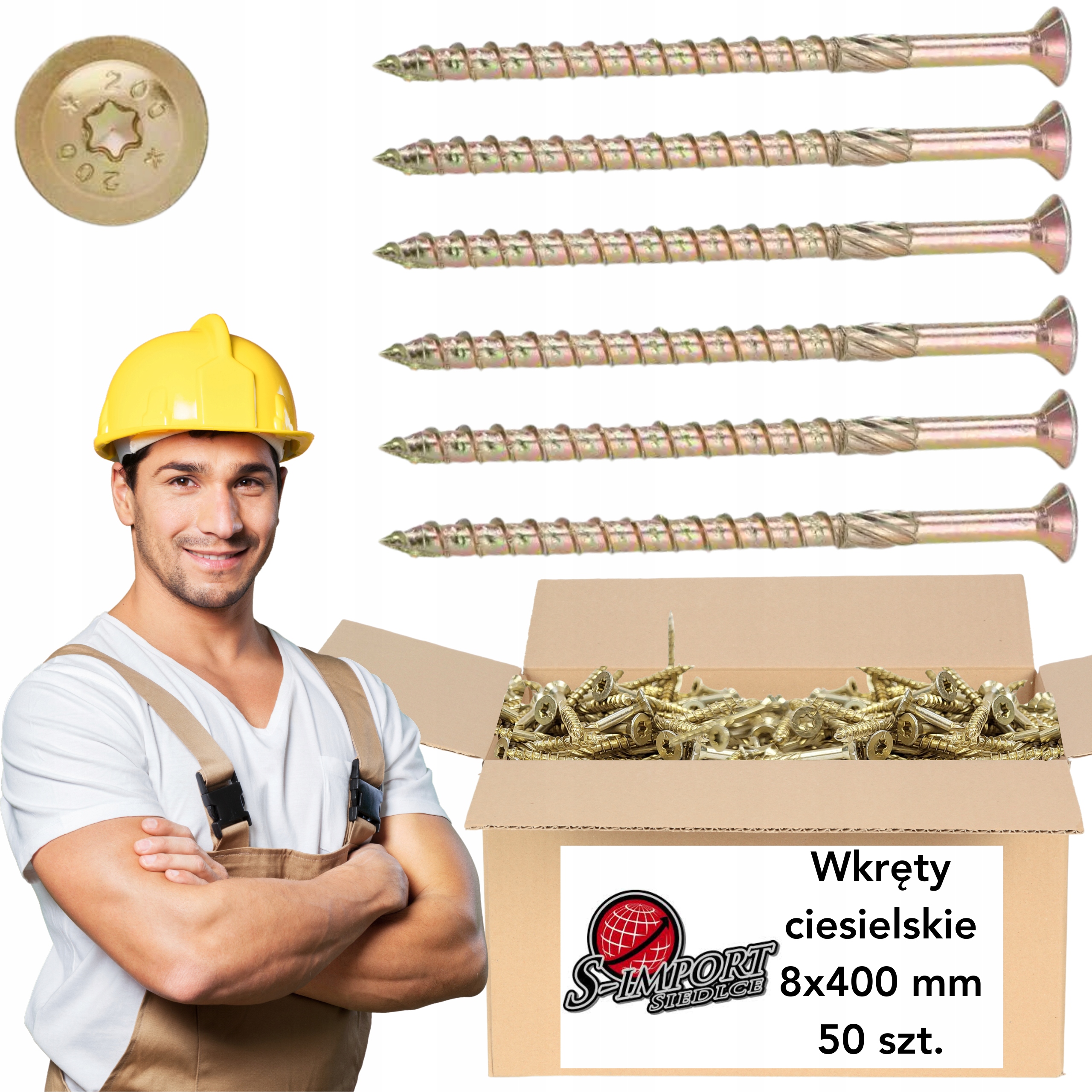 Kod producenta: Wkręty Ciesielskie TORX Do Drewna 50Szt 8x400