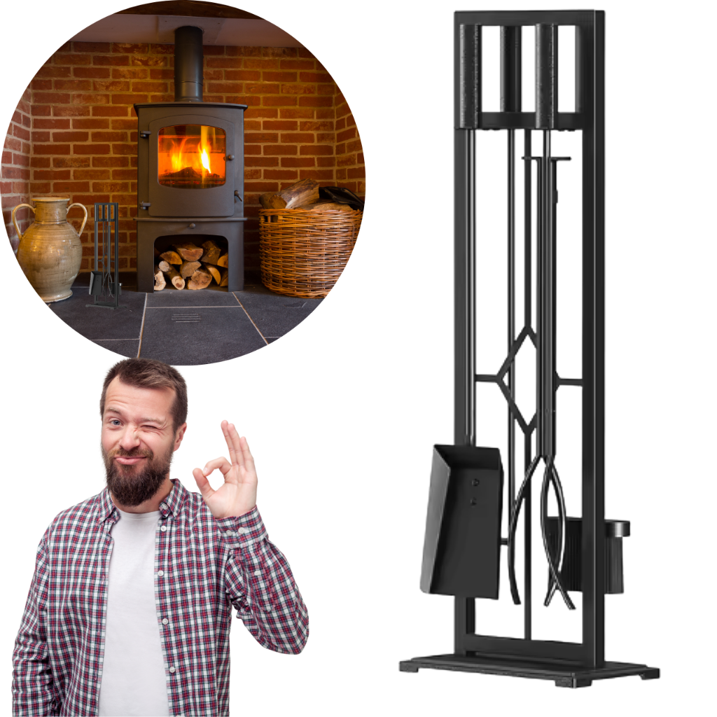➡️ Pełna funkcjonalność – komplet narzędzi: pogrzebacz, szczypce, szufelka i szczotka pozwalają w pełni zadbać o kominek. Każdy element ma swoje miejsce na stojaku, dzięki czemu panuje porządek.
